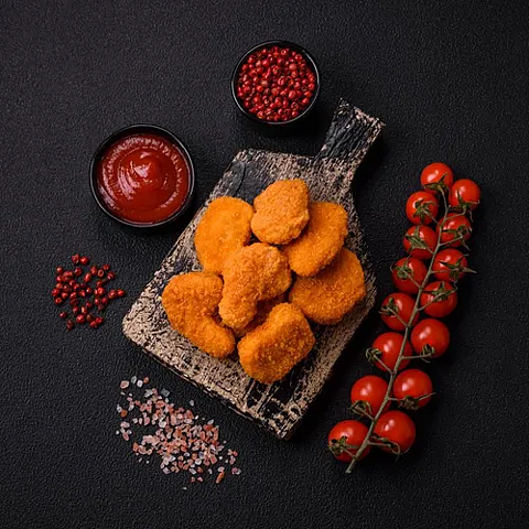 Куриные наггетсы — это хрустящие кусочки курицы, которые просто созданы для того, чтобы радовать ваши вкусовые рецепторы! Они идеально подходят для быстрого перекуса или вечернего фильма с друзьями. Подавайте с вашим любимым соусом и наслаждайтесь каждым кусочком!