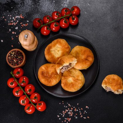 Представляю вам беляш — это невероятно вкусный пирожок с золотистой корочкой и сочной начинкой из мяса! Он идеально подходит для перекуса на ходу или уютного вечернего чаепития. Один укус, и вы сразу поймёте, почему его обожают все без исключения!